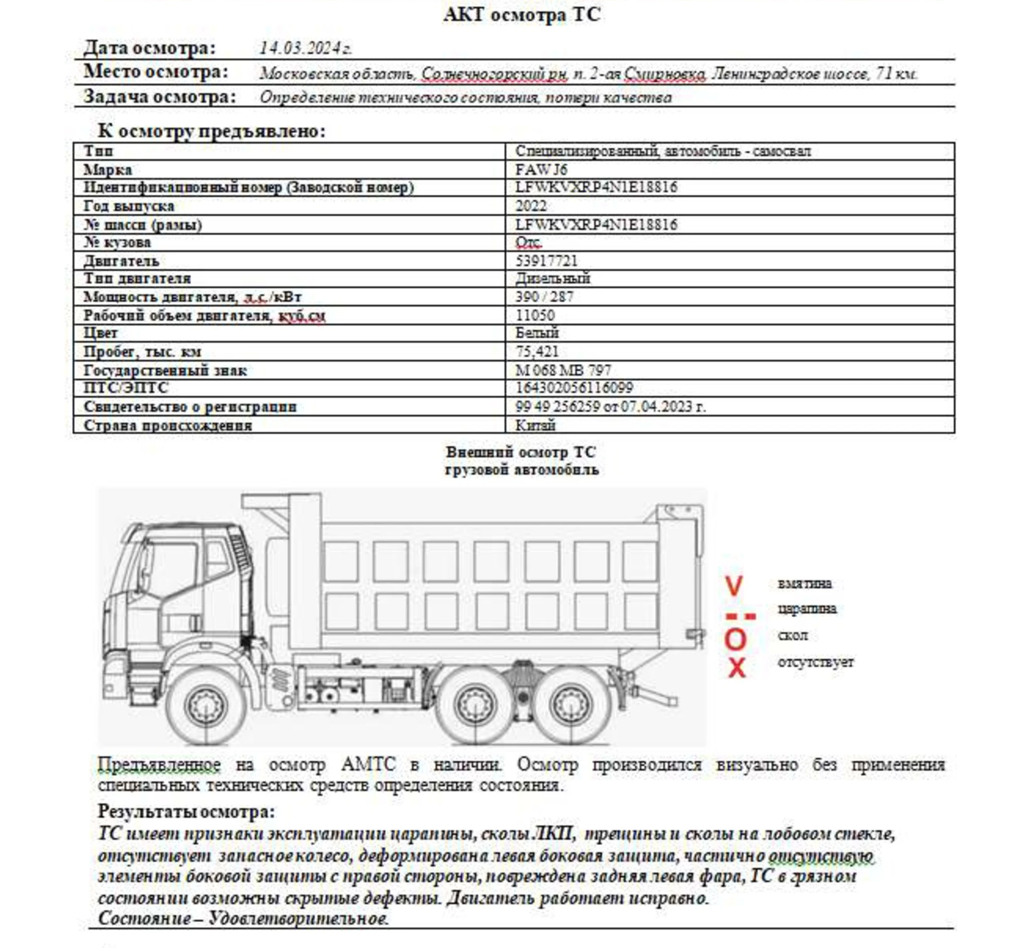 Специализированный, автомобиль - самосвал FAW J6