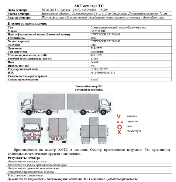 Специализированный, автомобиль-самосвал FAW J6 6x6