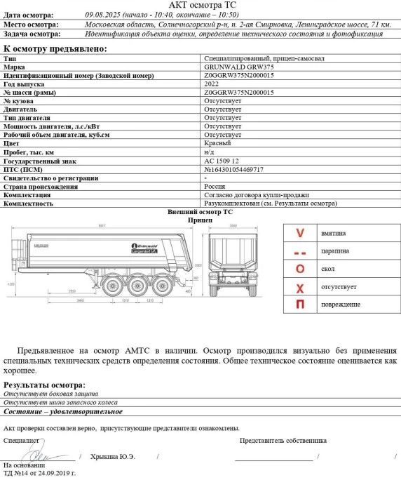Специализированный, прицеп-самосвал GRUNWALD GRW375